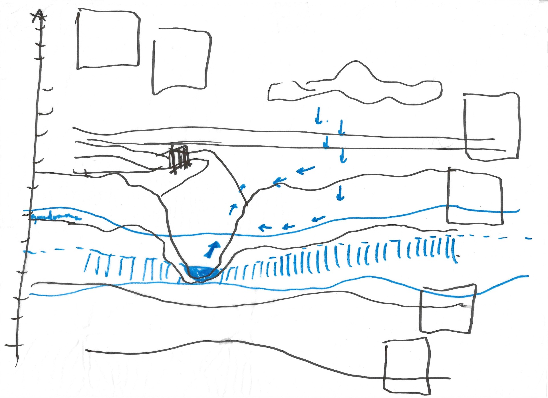 Gennem skitser, studier og undersøgelser åbnes nye perspektiver, hvor stedets ressourcer og naturens lag bliver en integreret del af løsningen.